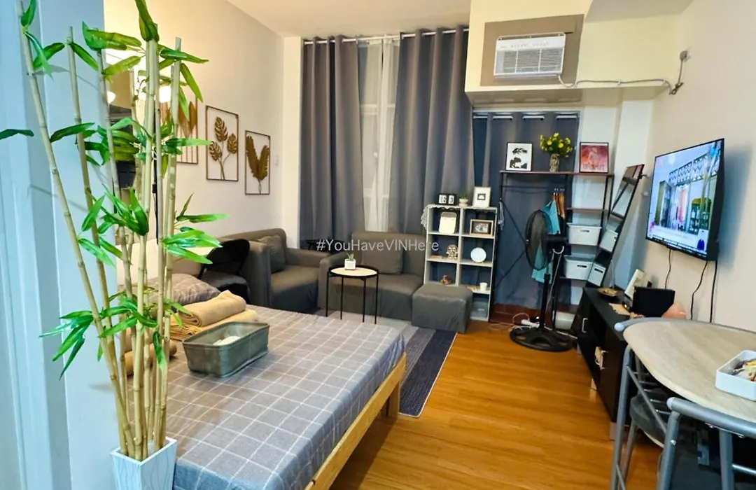 You Have VIN Here de Manille offre des chambres avec un coin salon comprenant une climatisation, ainsi qu'une TV à écran plat avec des chaînes satellite. Les chambres sont équipées d'une bouilloire électrique, d'un réfrigérateur et d'une table de cuisson, d'un bidet, une toilette séparée et une douche dans les salles de bain.